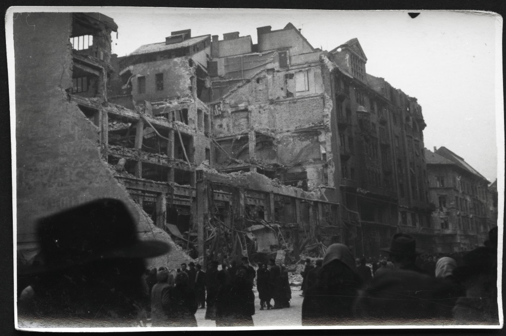 A Magyar Divatcsarnok romjai, Budapest, forradalom, ötvenhat, VII. kerület, Rákóczi út 70, kommunizmus, 1956, 1950-es évek, Eredeti fotó, papírkép.