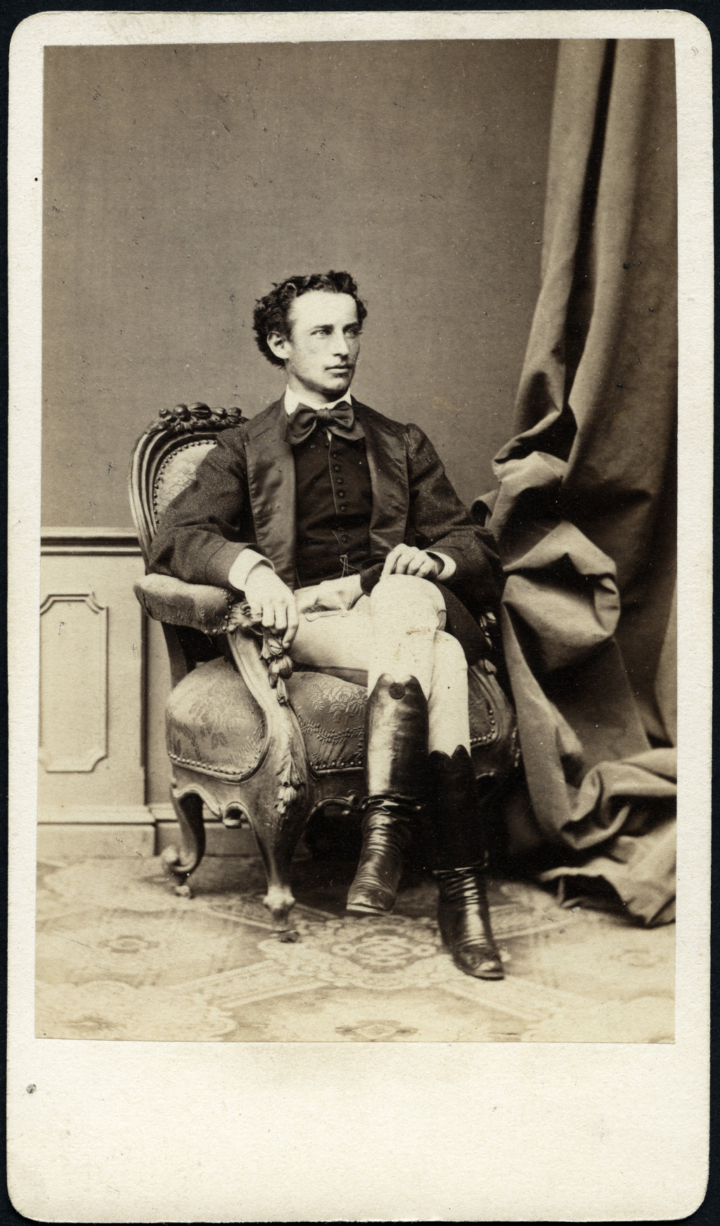 Borsos és Doctor műterem, Pest, elegáns fiatal úr csizmában, monarchia, 1860-as évek, Eredeti CDV, vizitkártya fotó.