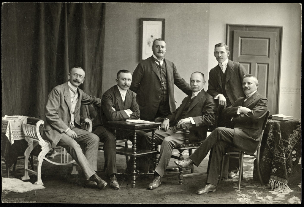 Brenner Testvérek műterme, Szeged, elegáns férfiak az asztal körül, 1910-es évek, monarchia, Eredeti fotó, papírkép.