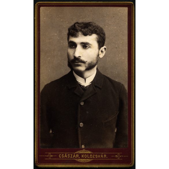Császár műterem, Kolozsvár, Erdély, elegáns szakállas úr portréja, Nuricsán Károly (?), monarchia, 1885, 1880-as évek, Eredeti CDV, hátulján Tordán feliratozott és szignózott vizitkártya fotó.