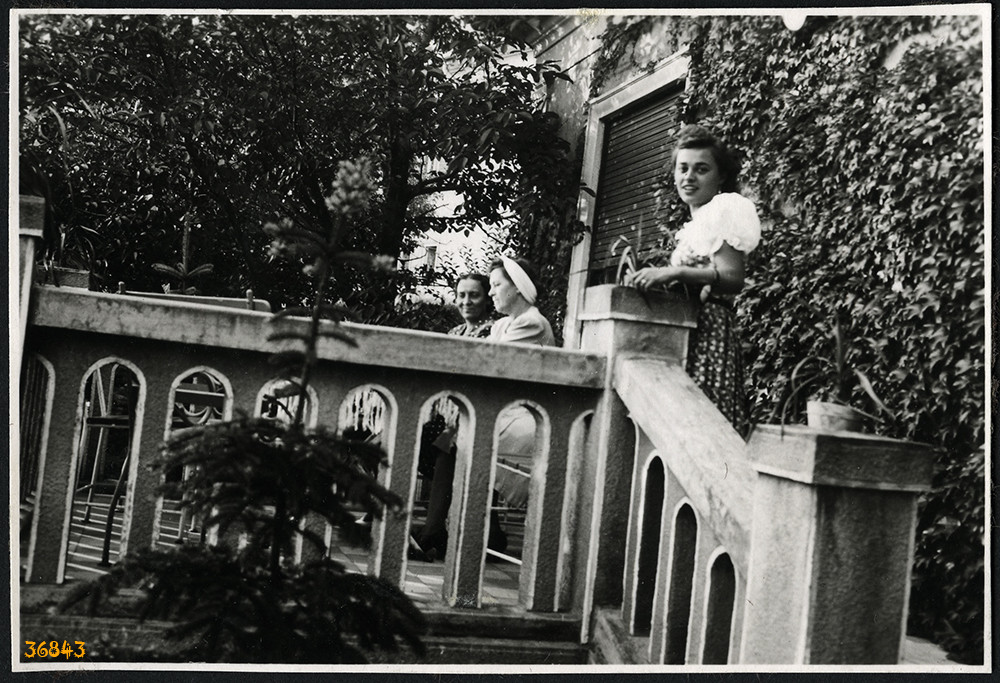 Elegáns hölgyek a Makláry-villa teraszán, Zebegény, helytörténet, Horthy-korszak, 1941, 1940-es évek, Pest megye, Eredeti fotó, papírkép, hátulján ragasztásnyomok.