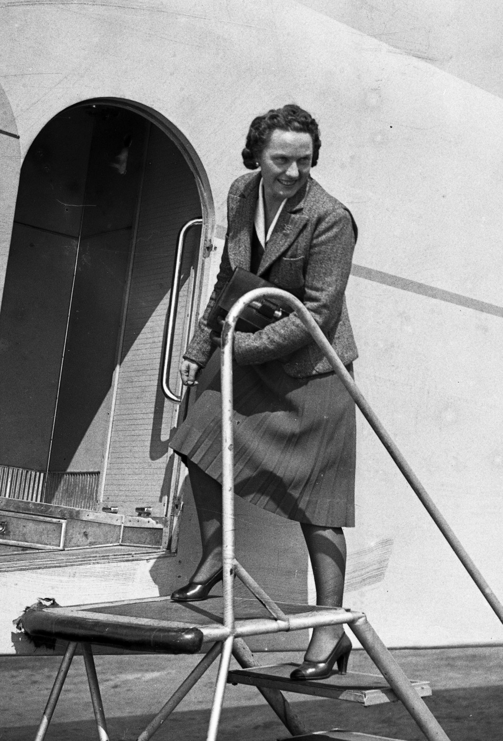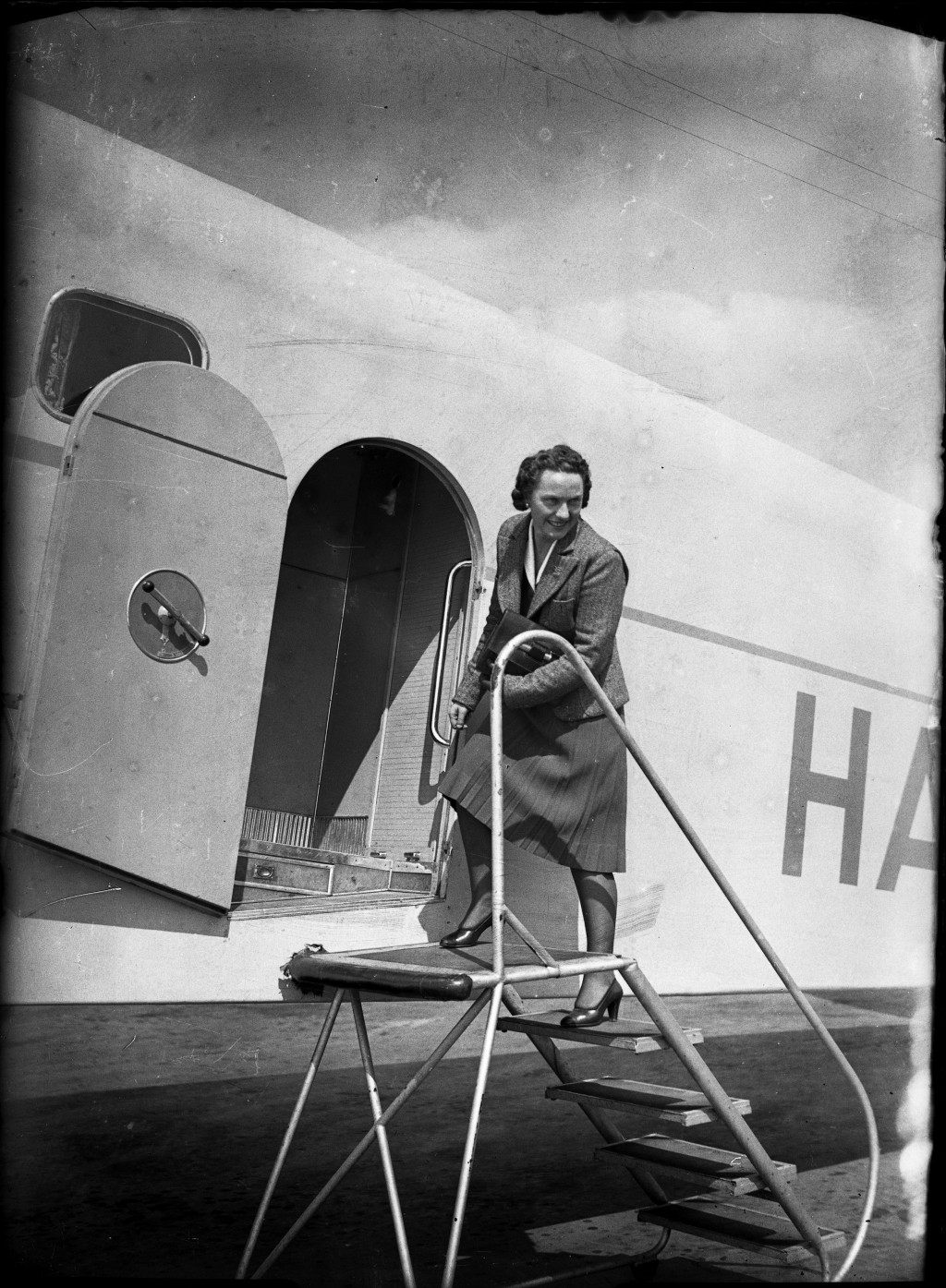 Eredeti üveg NEGATÍV! gróf Kreit Kitty a MALERT egyik első légi utaskísérője, Budaörs, repülőtér, repülőgép, Magyar Légiforgalmi RT., Horthy-korszak, 1939, 1930-as évek, Eredeti fotó negatív, üvegnegatív.
