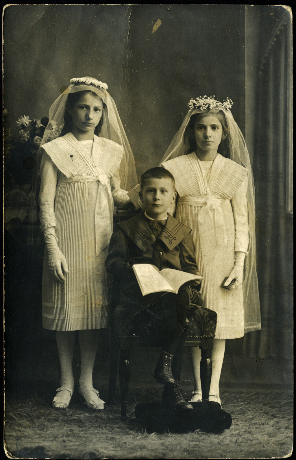Eugen Lieblich műterme, Nagyszeben (Hermannstadt), Erdély, elsőáldozók, gyerekek, ünnep, 1910-es évek, monarchia, Eredeti fotó, hátulján feliratozott papírkép.
