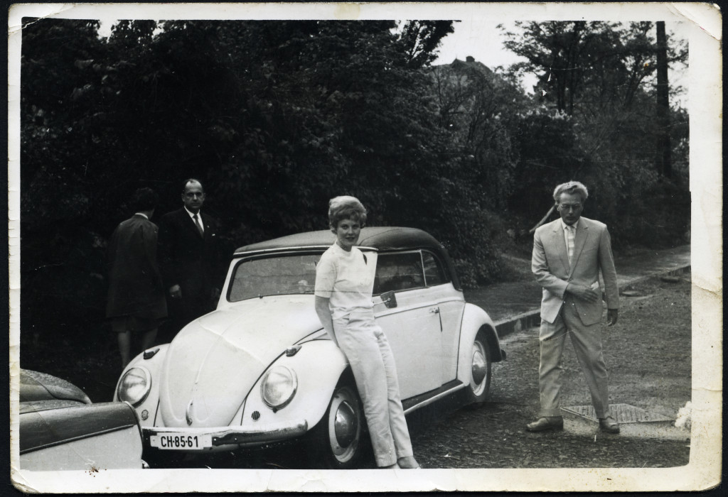 Fiatal pár magyar rendszámos Volkswagen bogár kabrióval, jármű, közlekedés, szocializmus, , 1960-as évek, Eredeti fotó, papírkép, hátulja foltos.
