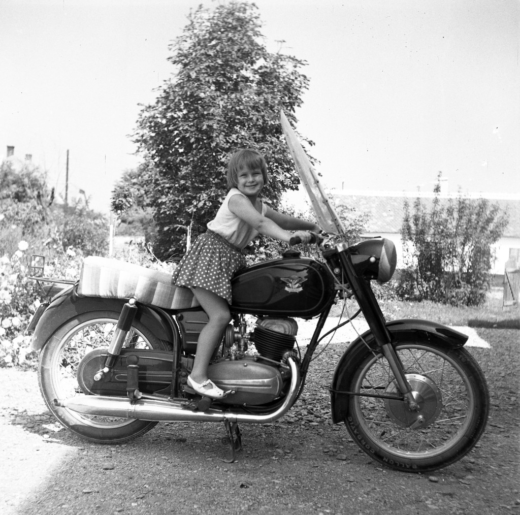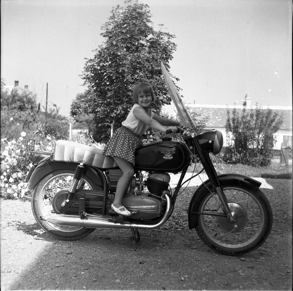 Fotó negatív! Kislány Pannonia motorkerékpáron, jármű, közlekedés, szocializmus, 1960-as évek, Eredeti nagyméretű fotó negatív!