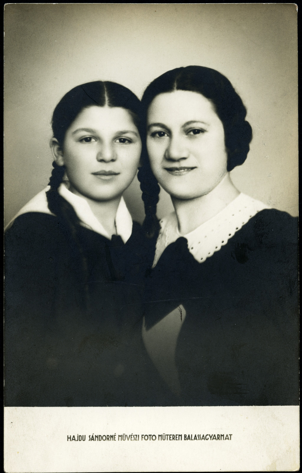 Hajdu Sándorné műterme, Balassagyarmat, anya lányával, család, portré, copf, helytörténet, 1930-as évek, Horthy-korszak, helytörténet, Eredeti fotó, papírkép.
