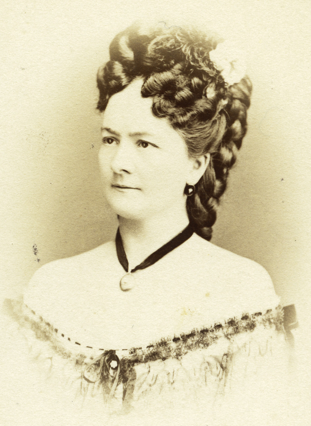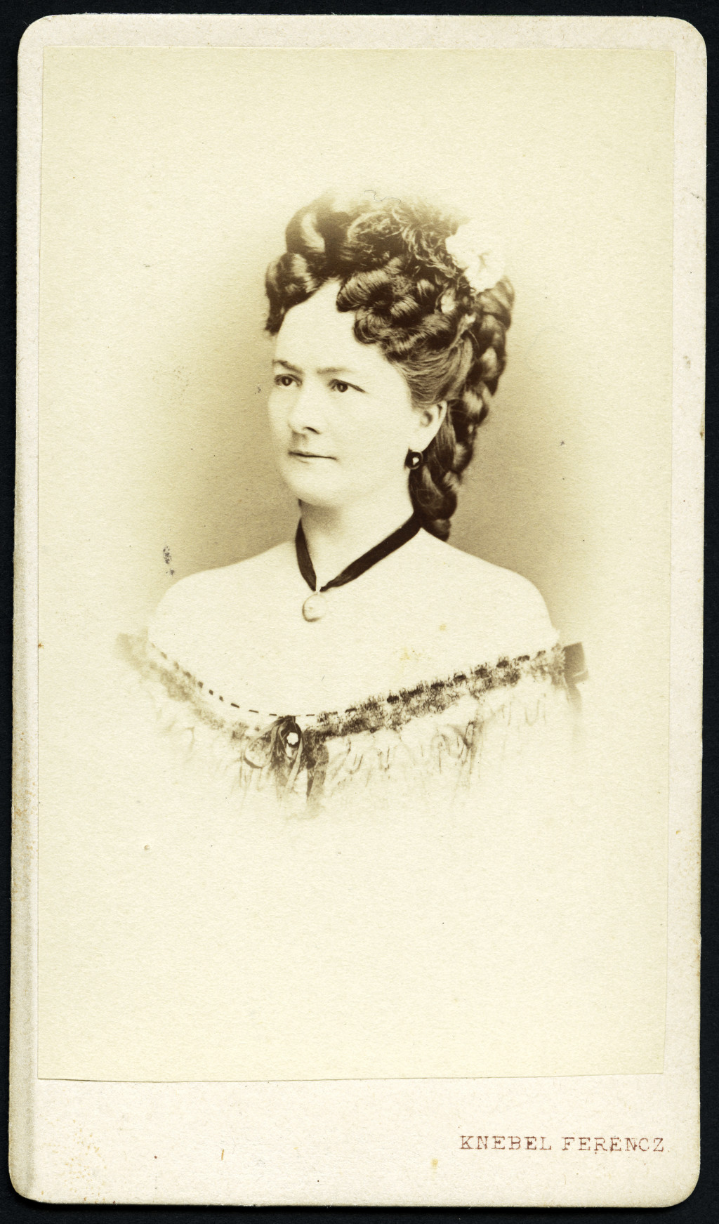 Knebel Ferenc fényirdája, Szombathely, elegáns nő portréja, gyönyörű haj, monarchia, 1860-as évek, Eredeti CDV, vizitkártya fotó.