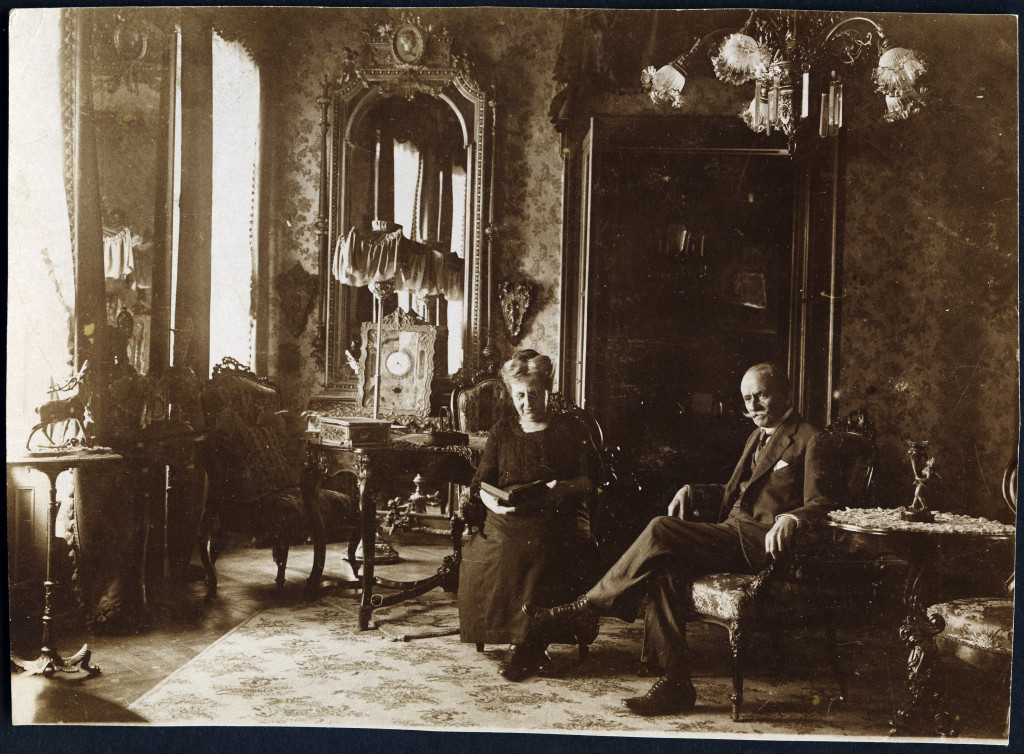 Kun Bertalan és felesége csáthi Szabó Margit, Miskolc, polgári lakásbelső, 1900-as évek, monarchia, helytörténet, Eredeti fotó, hátulján feliratozott papírkép. méret megközelítőleg (centiméterben): 8 x 11 Használt! Eredeti nagyítás! Nem reprint, n