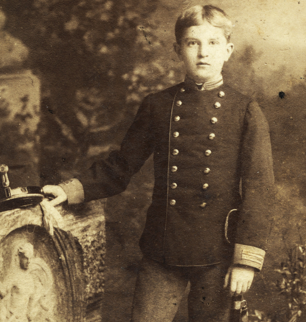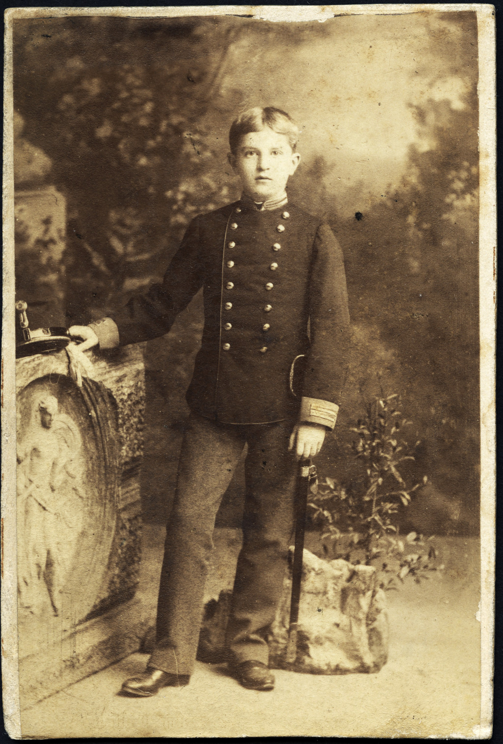 Lafranchini műterem, Bécs, (Wien, Vienna), Ausztria, Gilebert Aurél portréja, kard, kadét, hadapród, katonai egyenruha, monarchia, 1880-as évek, Eredeti CDV, hátulján feliratozott vizitkártya fotó.