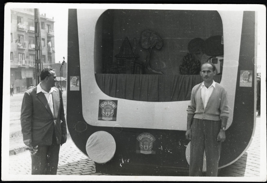 Orion televízió reklám egy felvonuláson a gyár vezetőivel, Budapest, tv, szocializmus, 1950-es évek, . Eredeti fotó, papírkép.