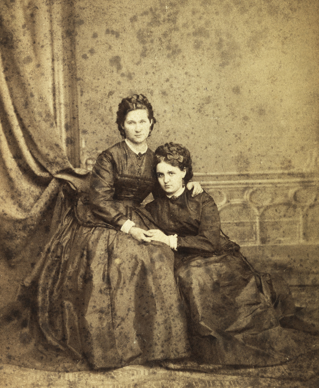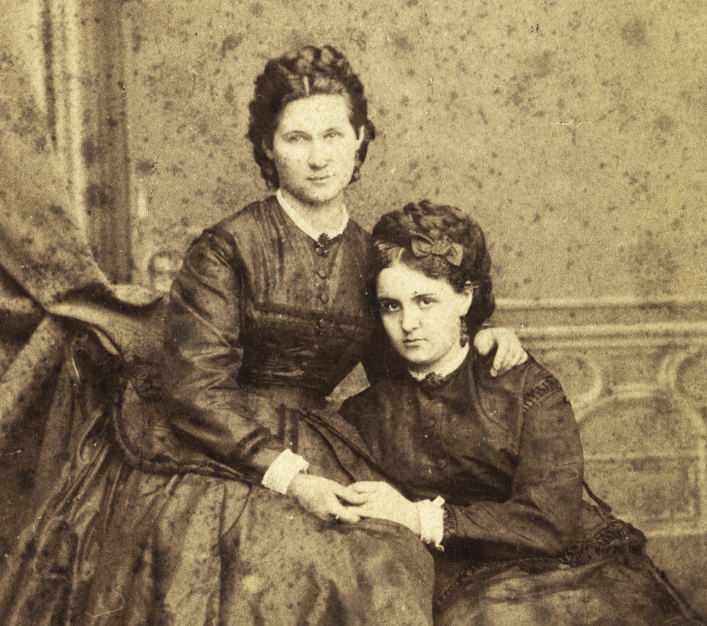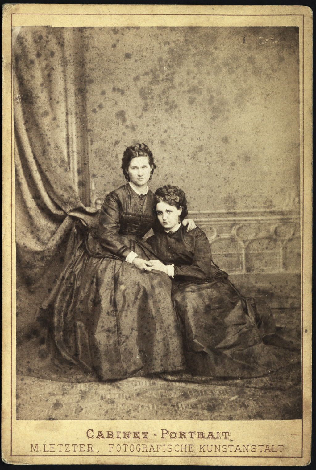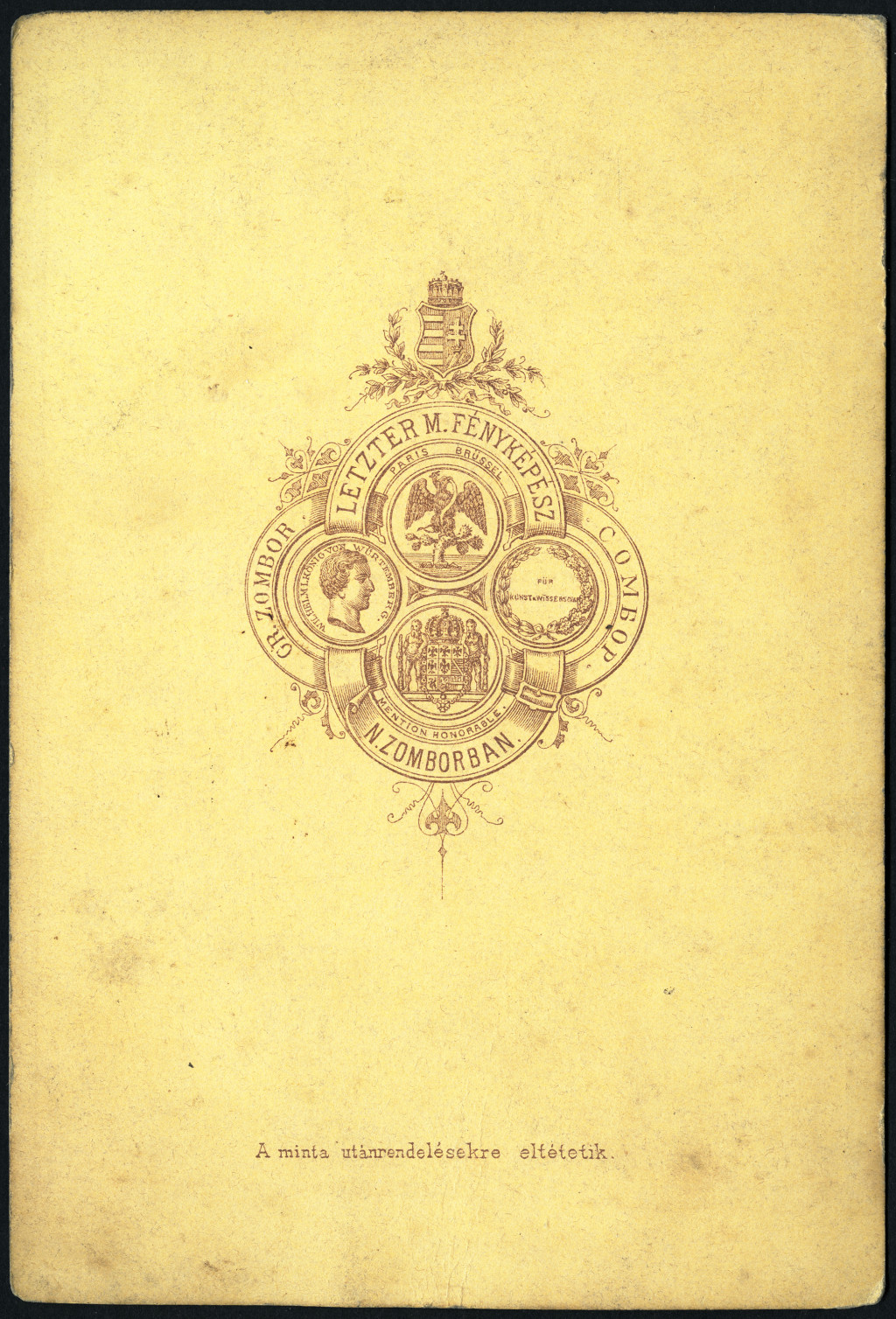 Ritka műterem, M. Letzter műterme, Zombor, Vajdaság, fiatal anya lányával (testvérek?), kézenfogva, monarchia, 1870-es évek, Eredeti kabinetfotó, felülete foltos.