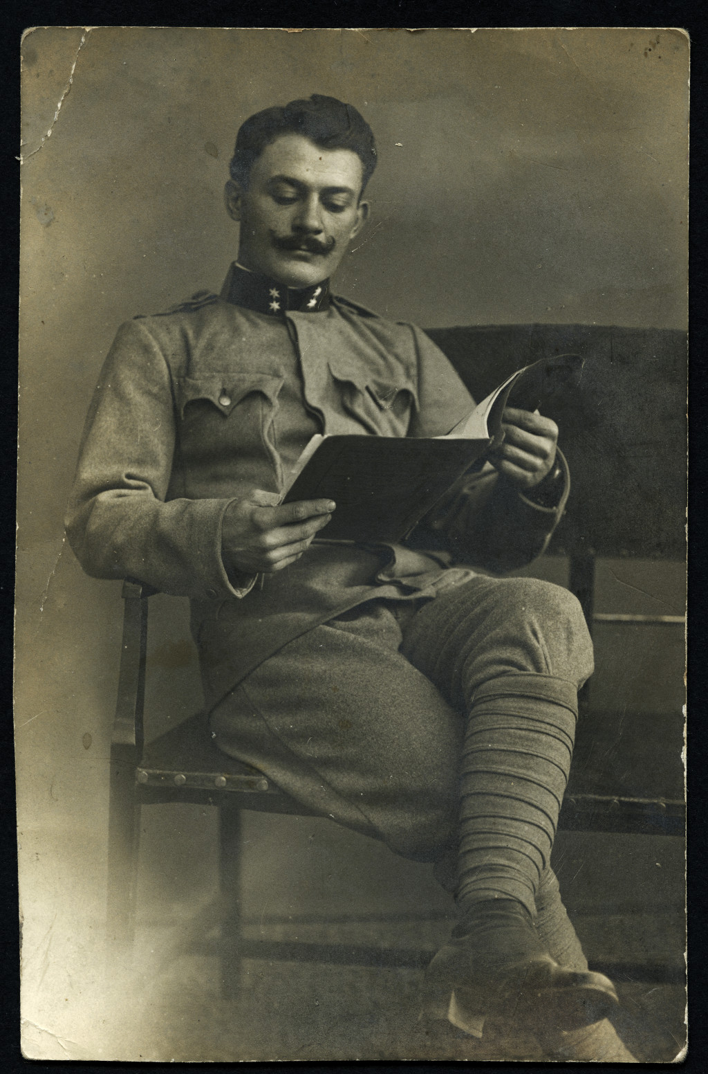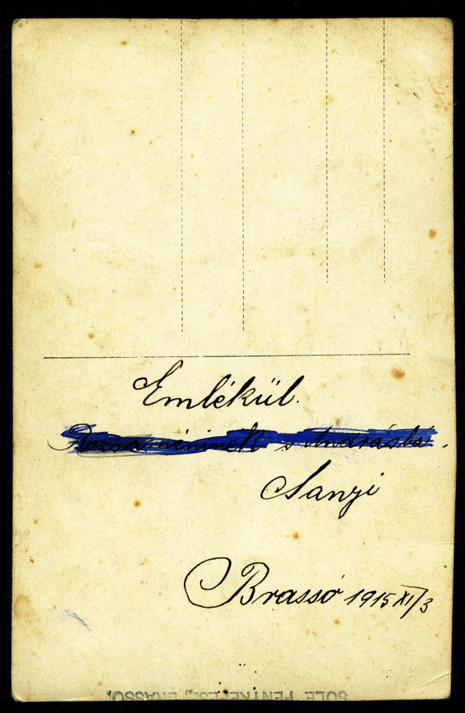 SOLE fényképész, Brassó, Erdély, magyar katona egyenruhában, bajusz, 1. világháború, 1915, 1910-es évek, monarchia, Eredeti fotó, hátulján feliratozott papírkép, sarkán törésnyom, ritka műterem.