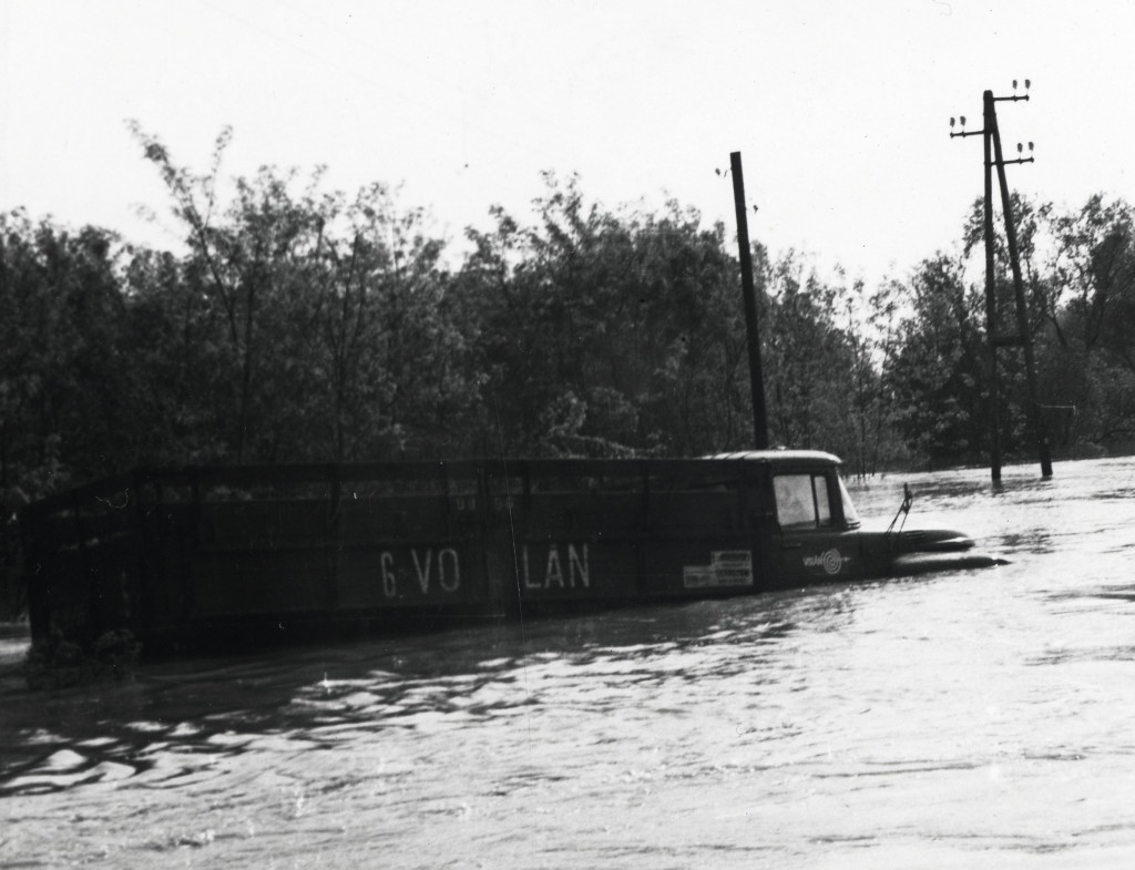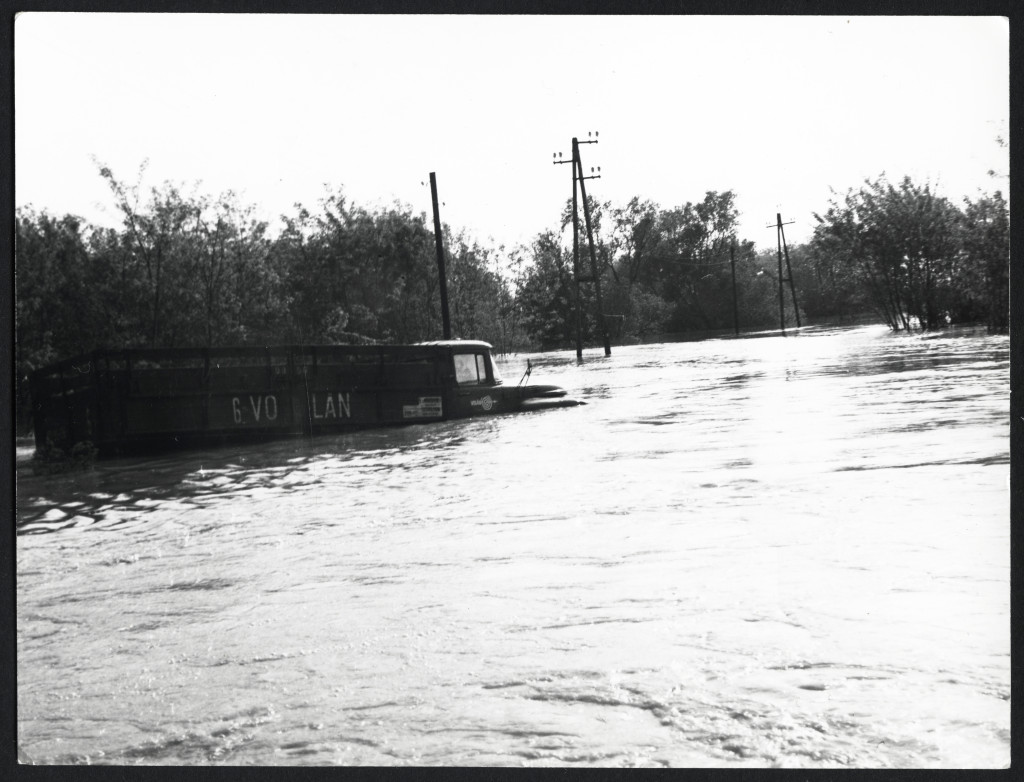 Tiszai árvíz, Győrtelek, Zil teherautó, autó, jármű, közlekedés, Szabolcs-Szatmár-Bereg megye, helytörténet, 1970, 1970-es évek, szocializmus, Eredeti fotó, hátulján feliratozott papírkép.