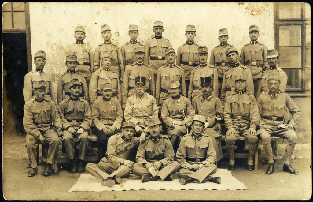 Tiszti iskolások, Nagyszeben, Erdély, magyar katonák egyenruhában, Héjja József küldte Hódmezővásárhelyre szüleinek, 1. világháború, 1915, 1910-es évek, monarchia, Eredeti fotó, papírkép.