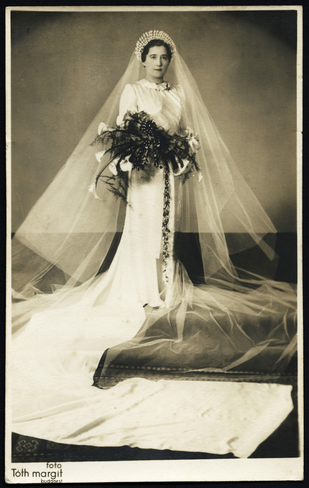 Tóth Margit műterme, Budapest, gyönyörű menyasszony, esküvő, ünnep, virág, Horthy-korszak, 1930-as évek, Eredeti fotó, papírkép.