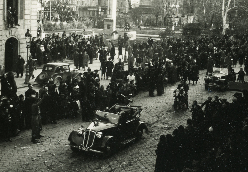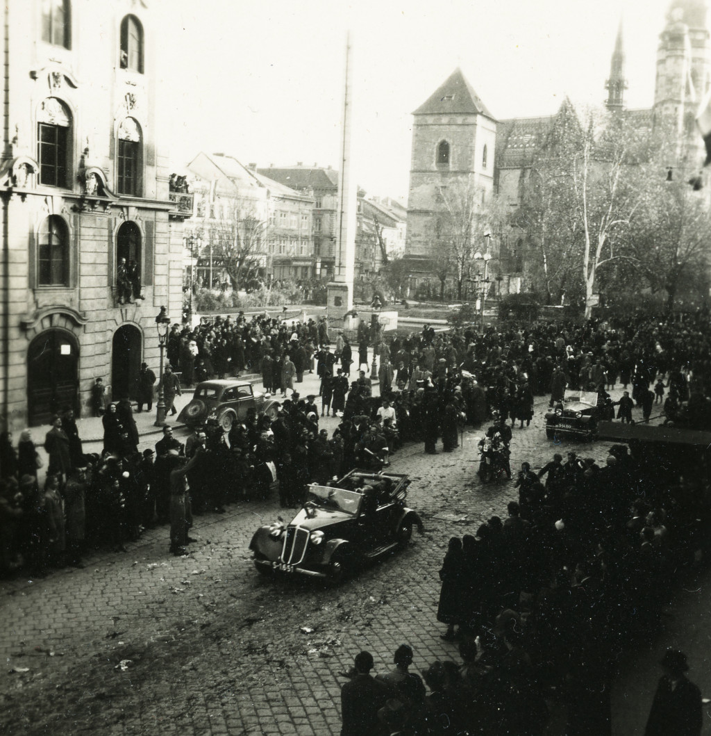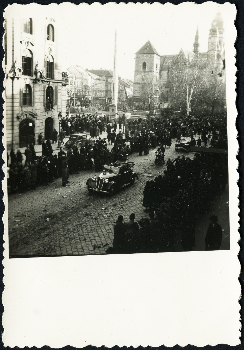Ünnepi felvonulás, Kassa, Felvidék, gépkocsi, motorkerékpár, jármű, közlekedés, Horthy-korszak, helytörténet, Eredeti fotó, papírkép.