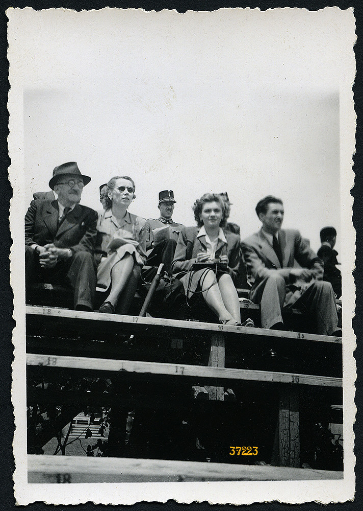 Úri társaság a lóversenyen, Kolozsvár, Erdély, magyar katona, egyenruha, sport, 2. világháború, Horthy-korszak, helytörténet, 1943. június 29., 1940-es évek, Eredeti fotó, papírkép.