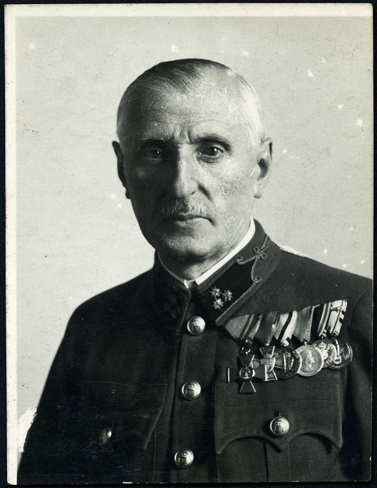 Virágh János egyenruhában, a frankhamisítási botrány egyik elítéltje, érdemrend, kitüntetés, katona, tiszt, Térképészeti Intézet, 2. világháború, Horthy-korszak, 1940-es évek, Eredeti fotó, papírkép, igazolványkép.