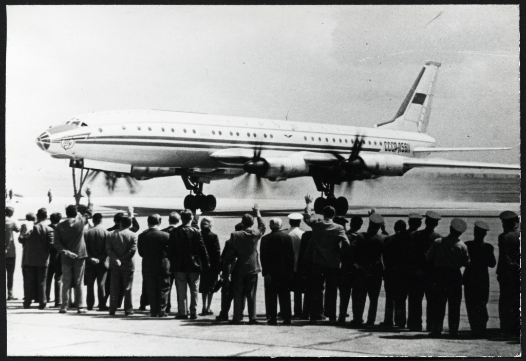 A Tupoljev TU-114 szovjet repülőgép bemutatója, Budapest, Ferihegy, repülés, jármű, közlekedés, szocializmus, 1959. június 5,, 1950-es évek, Eredeti fotó, papírkép.