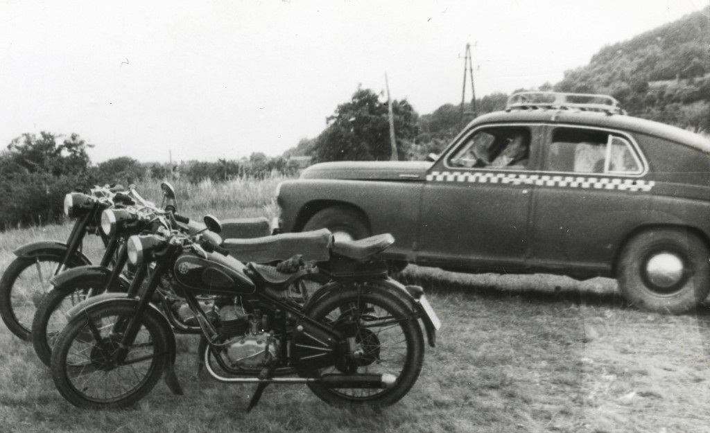 Danuvia motorkerékpárok, Warszava taxi gépkocsi, jármű, közlekedés, autó, szocializmus, 1960-as évek, Eredeti fotó, papírkép.
