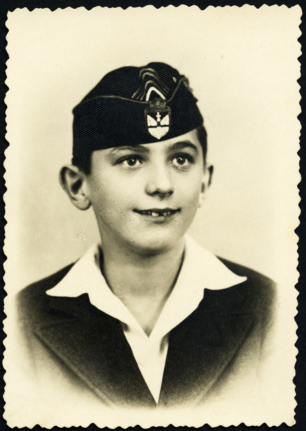 Iskolás fiú sapkában, Horthy-korszak, 1933, 1930-as évek, Eredeti fotó, hátulján feliratozott papírkép.