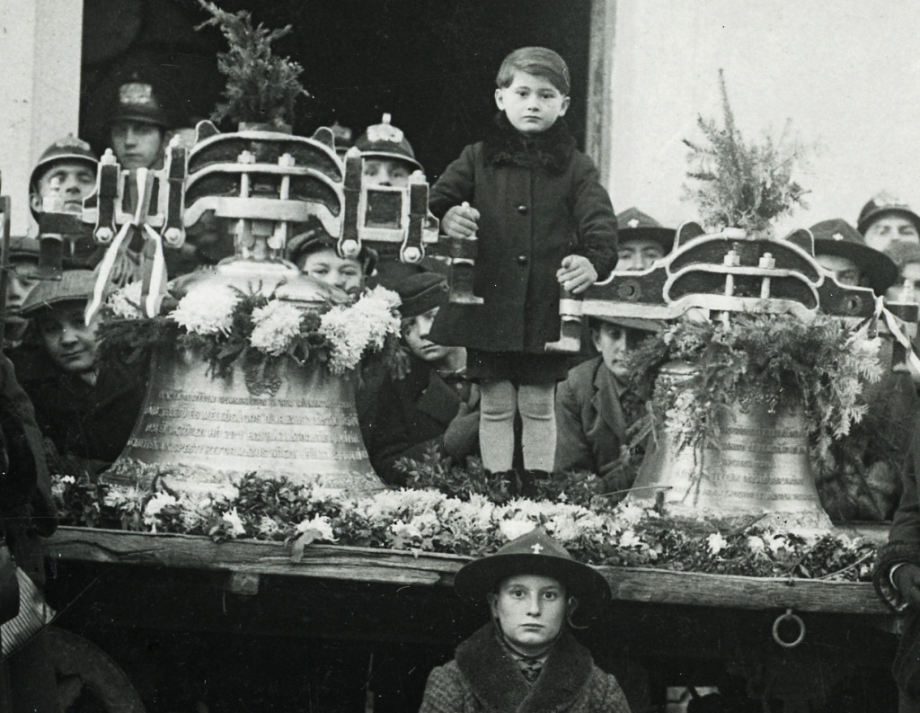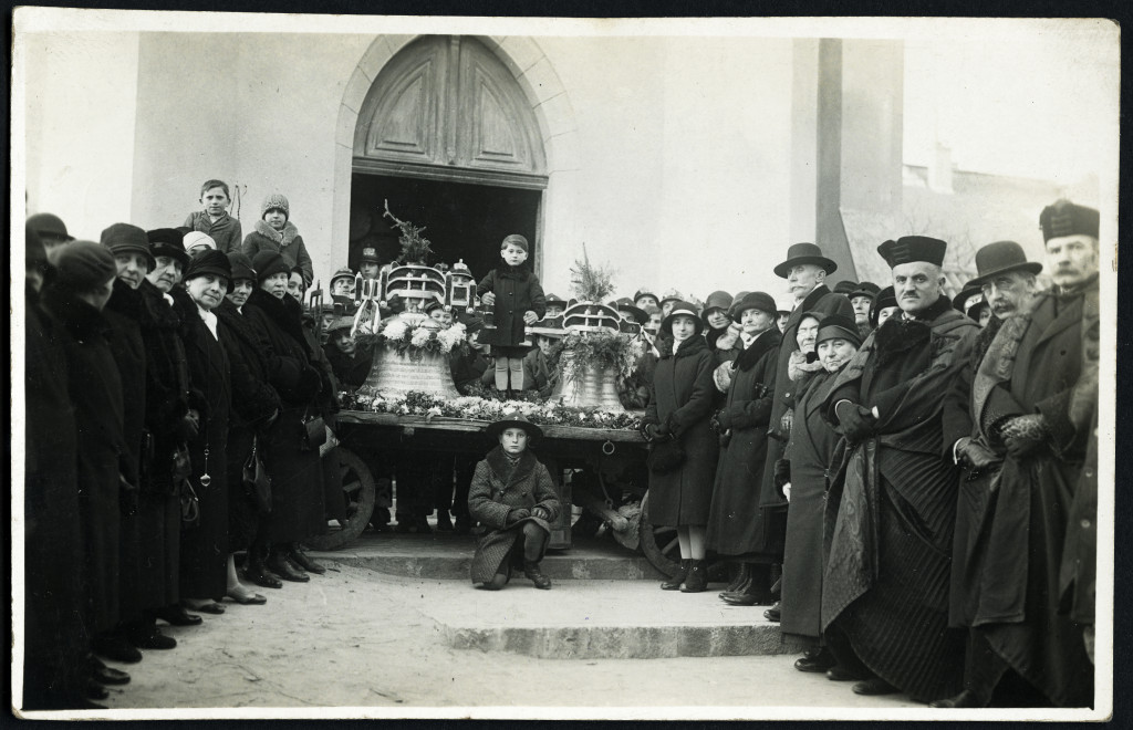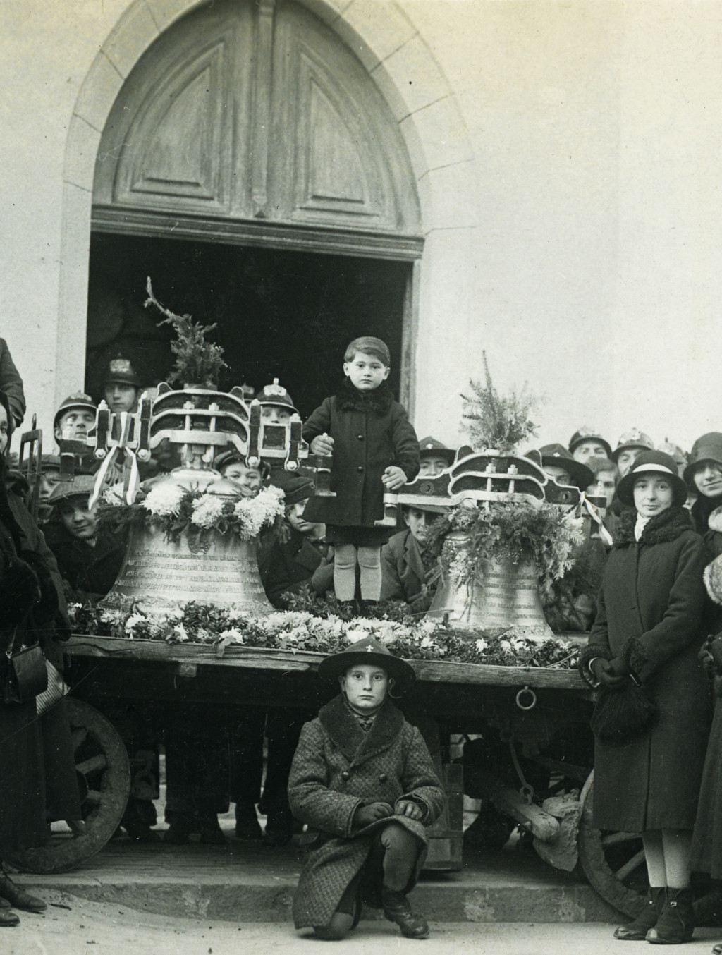 Posfay Andor művészi fényképész, Kispest, központi református templom, harangszentelés, cserkész, egyház, vallás, ünnep, helytörténet, 1928. október 20, Horthy-korszak, 1920-as évek, Eredeti pecséttel jelzett fotó, papírkép, hátulján feliratozva.