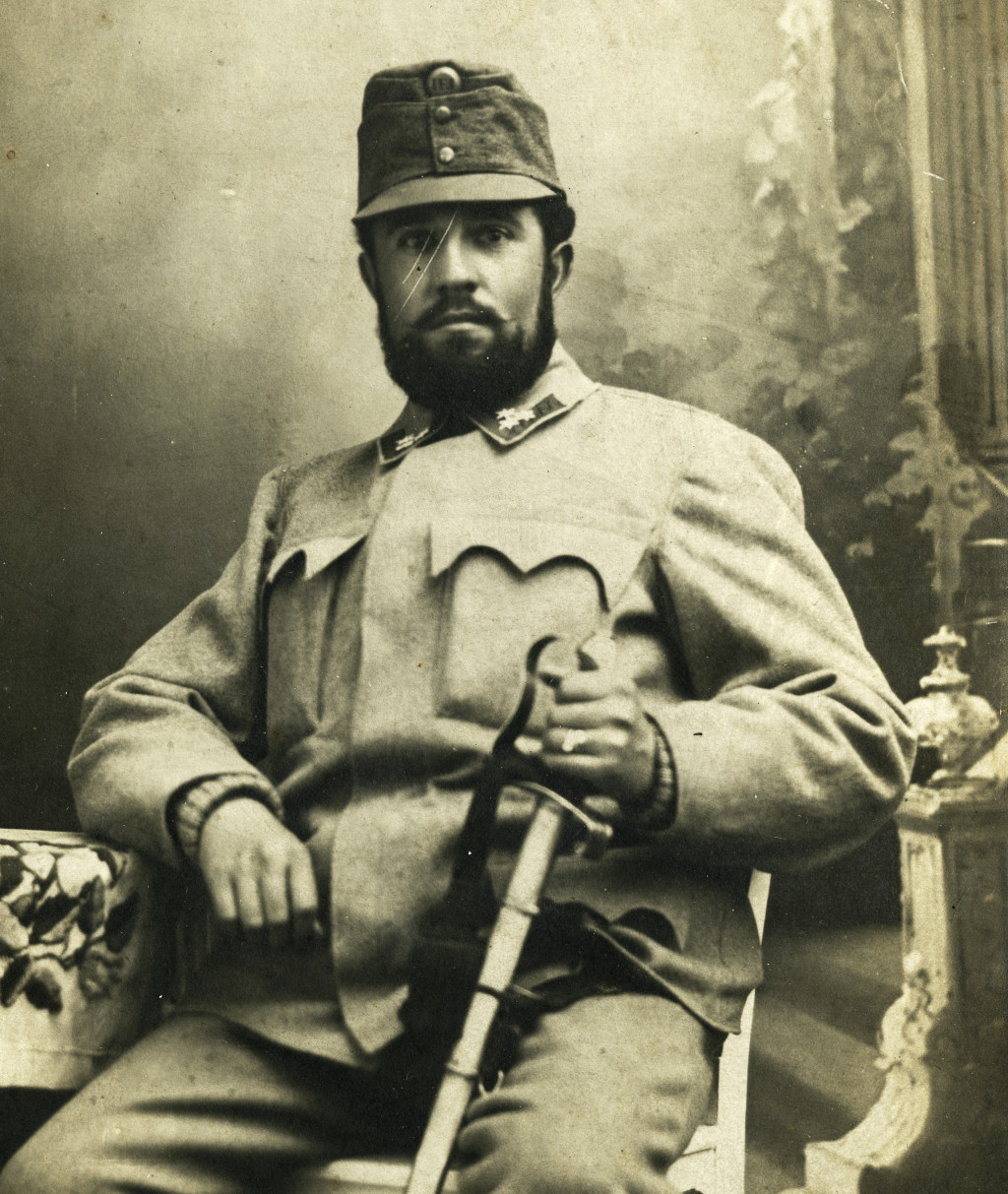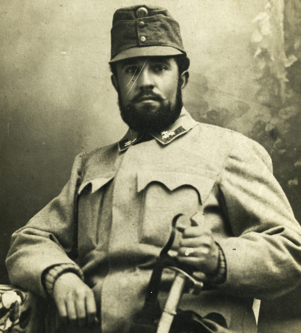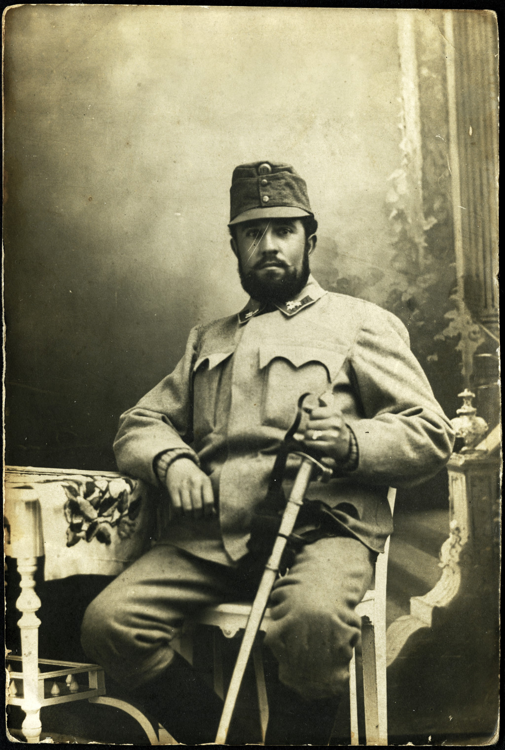 Plohn József műterme, Hódmezővásárhely, magyar katona egyenruhában, kard, 1. világháború, helytörténet, monarchia, 1910-es évek, Eredeti fotó, jelzett papírkép.
