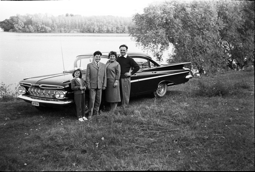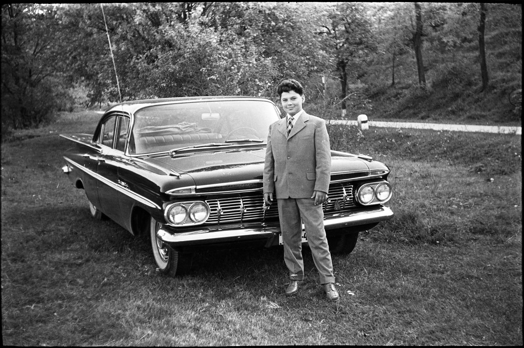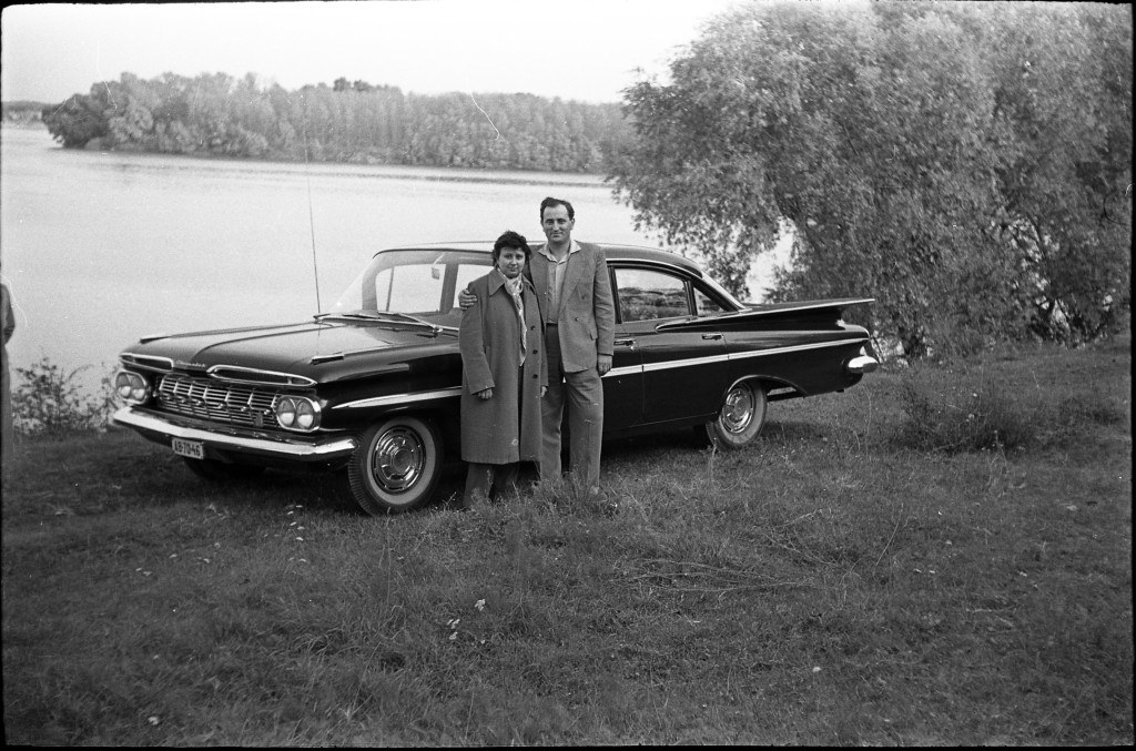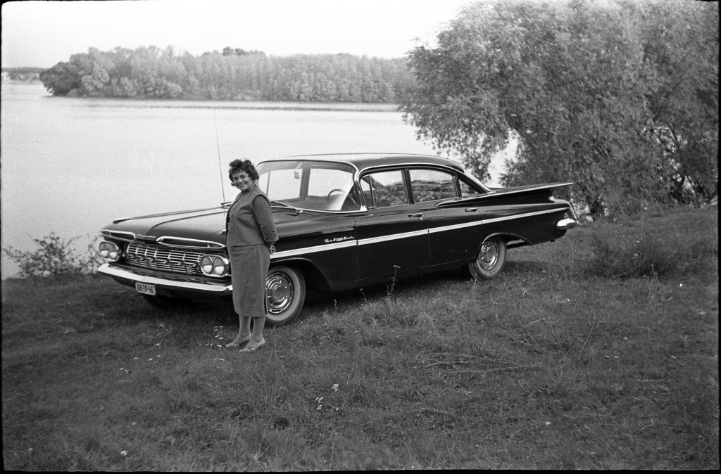 5 darab eredeti fotó negatív. Chevrolet Impala (Bel Air) amerikai luxus személygépkocsi magyar állami rendszámmal, Duna-part, autó, jármű, közlekedés, szocializmus, 1960-as évek. 5 darab eredeti fotónegatív.