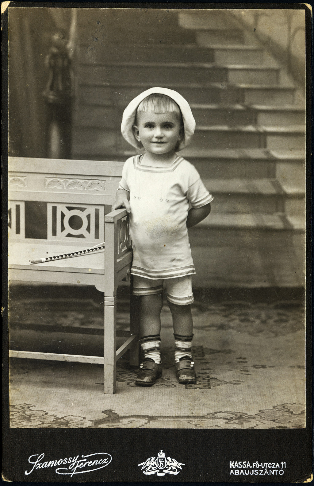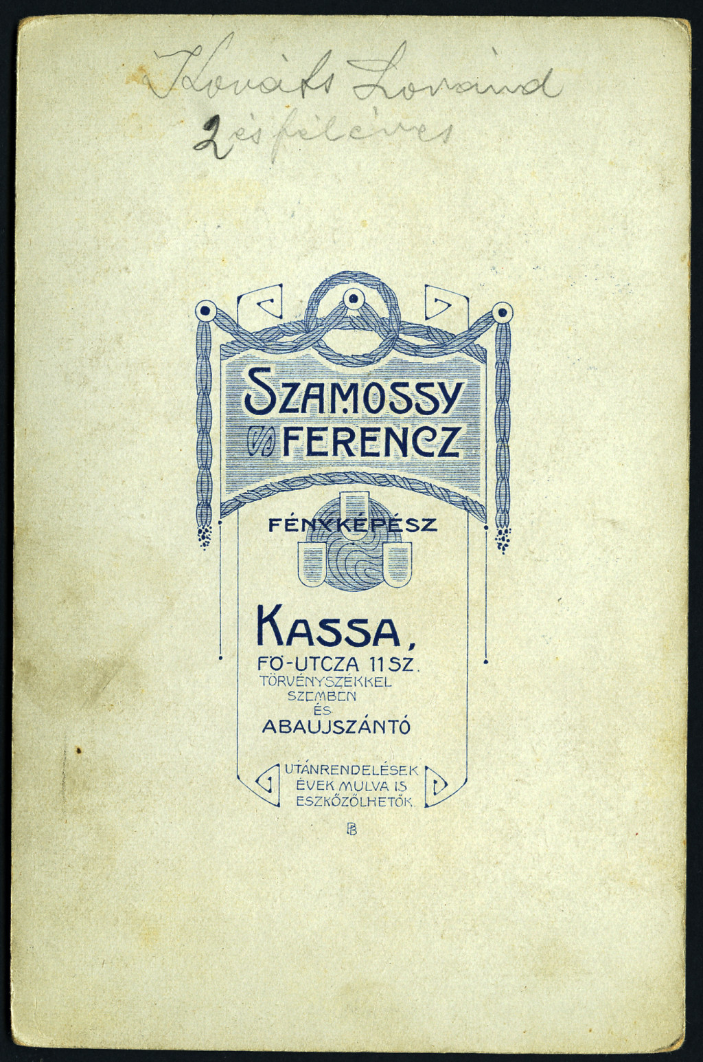 Szamossy Ferenc műterme, Kassa, Felvidék, hátoldalon nevesített gyerek portréja, Kováts Lóránd, monarchia, 1900-as évek, Eredeti, hátulján feliratozott kabinetfotó.