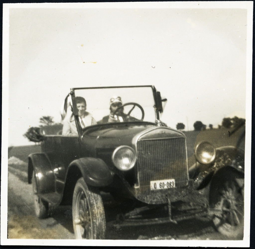 Utazás nyitott Ford T modell Touring személygépkocsival, autó, jármű, közlekedés, magyar rendszám, Horthy-korszak, 1930-as évek, Eredeti fotó, papírkép, hátulján ragasztásnyom.