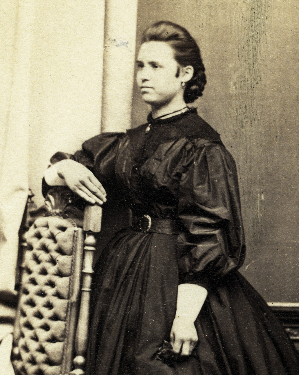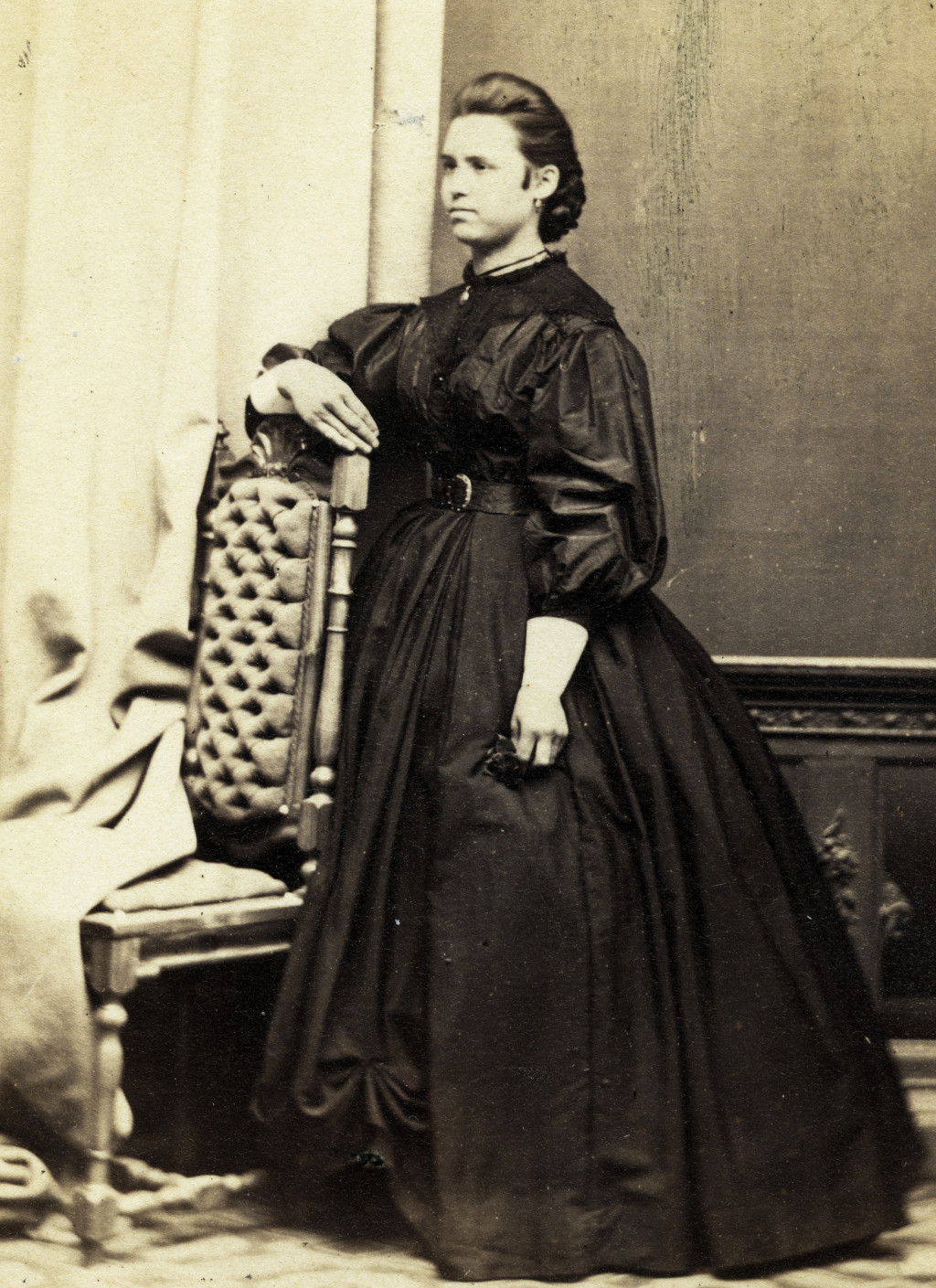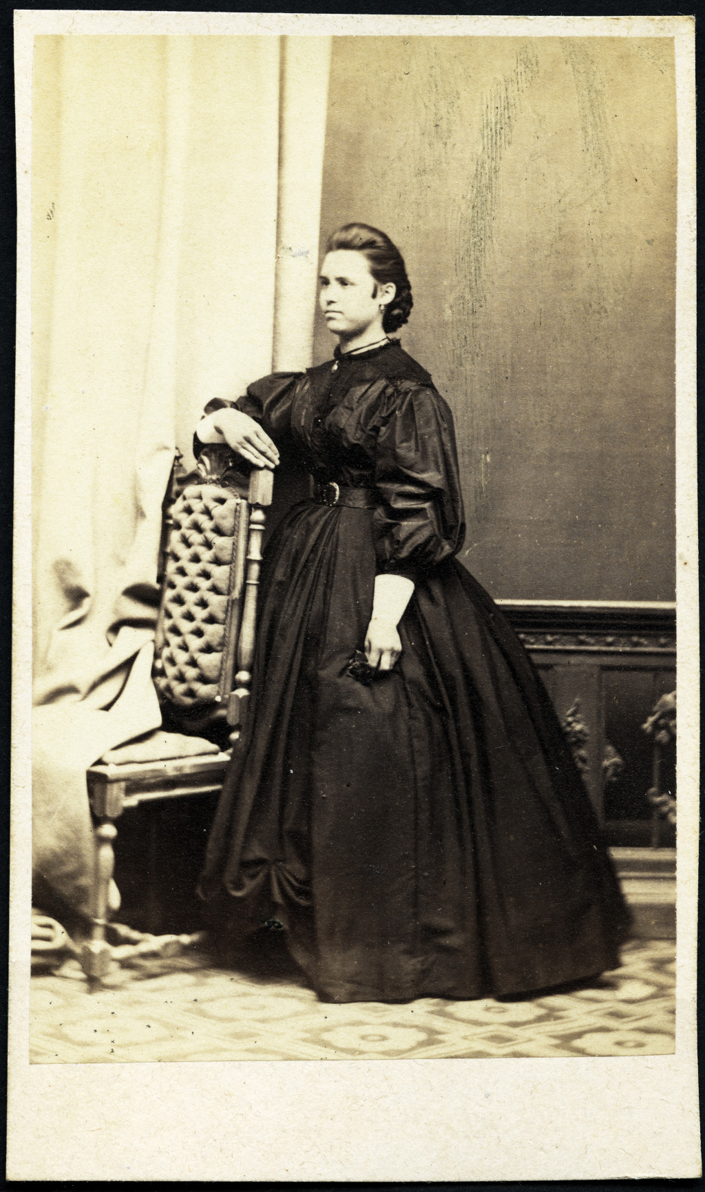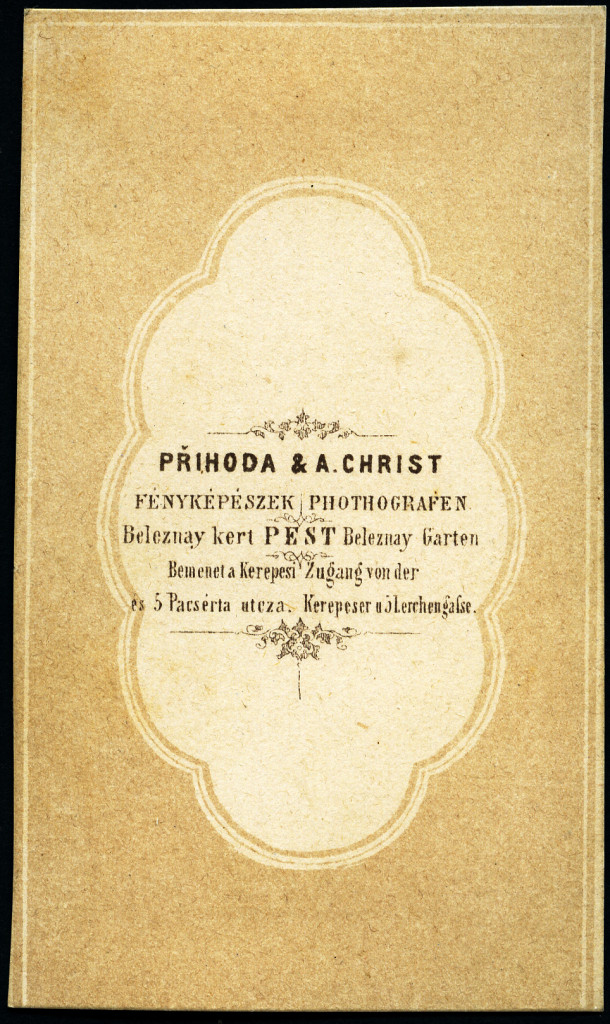 Prihoda & A. Christ műterme, Pest, Beleznay kert, elegáns nő gyönyörű ruhában, portré, 1860-as évek, Eredeti CDV, korai vizitkártya fotó.