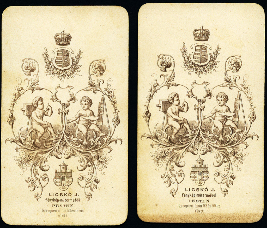 2 egyforma fotó, Licskó műterem, Pest (Budapest), elegáns úri gyerek portréja, monarchia, 1860-as évek, Eredeti CDV, korai vizitkártya fotó gyönyörű hátlappal.
