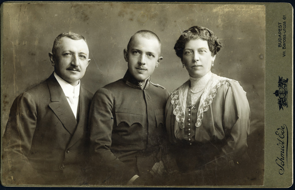 Nagyobb méret, Schmidt Ede műterme, Budapest, monarchia, elegáns házaspár katona fiúval, család, egyenruha, 1. világháború, monarchia, 1910-es évek, Eredeti kabinetfotó.