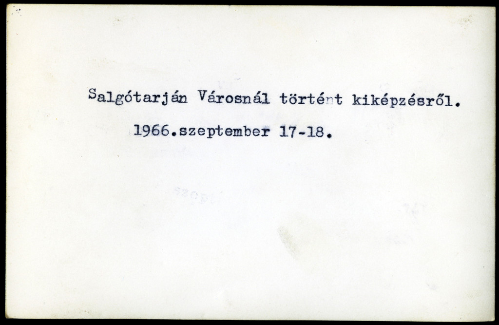 „Salgótarján Városnál történt kiképzésről”, Salgótarján, Salgóbánya, Medvesi út, katona, egyenruha, néphadsereg, helytörténet, 1966. szeptember 17-18, 1960-as évek, szocializmus, Eredeti fotó, hátulján feliratozott papírkép. méret megközelítőleg (c