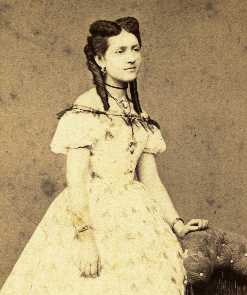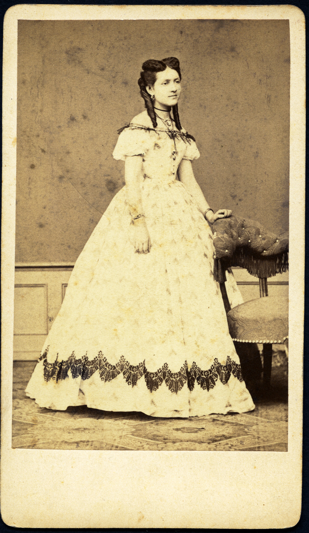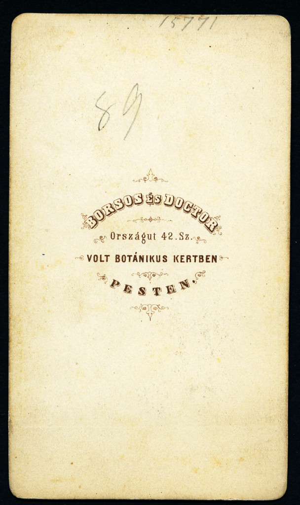 Borsos és Doctor műterme, Pest, elegáns fiatal nő portréja, gyönyörű haj, frizura, nemes, monarchia, 1860-as évek, Eredeti CDV, vizitkártya fotó.
