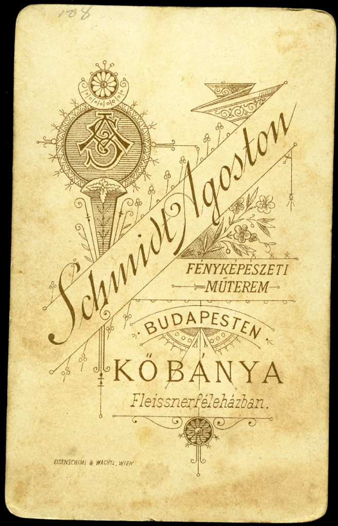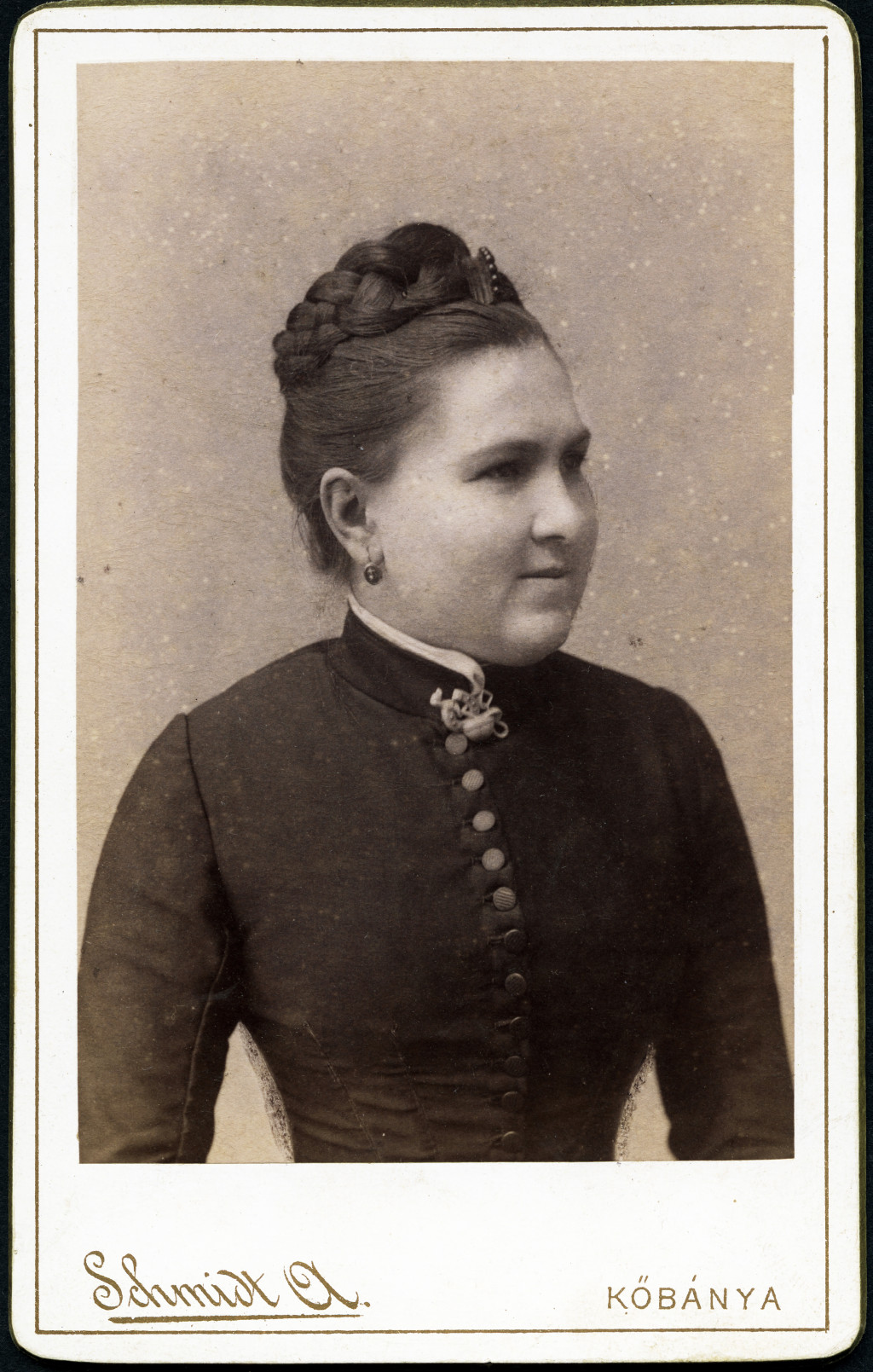 Schmidt Ágoston műterme, Kőbánya (Budapest) elegáns nő retusált portréja, medál, helytörténet, monarchia, 1890-es évek, Eredeti CDV, vizitkártya fotó.