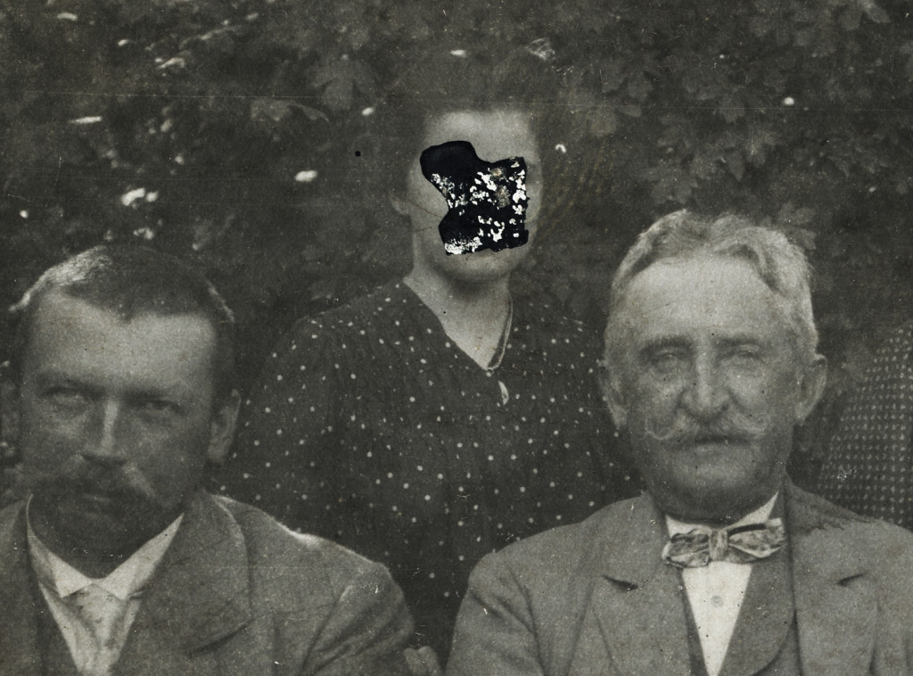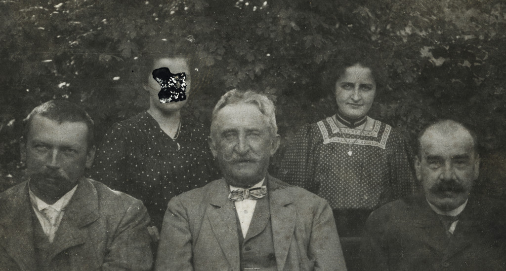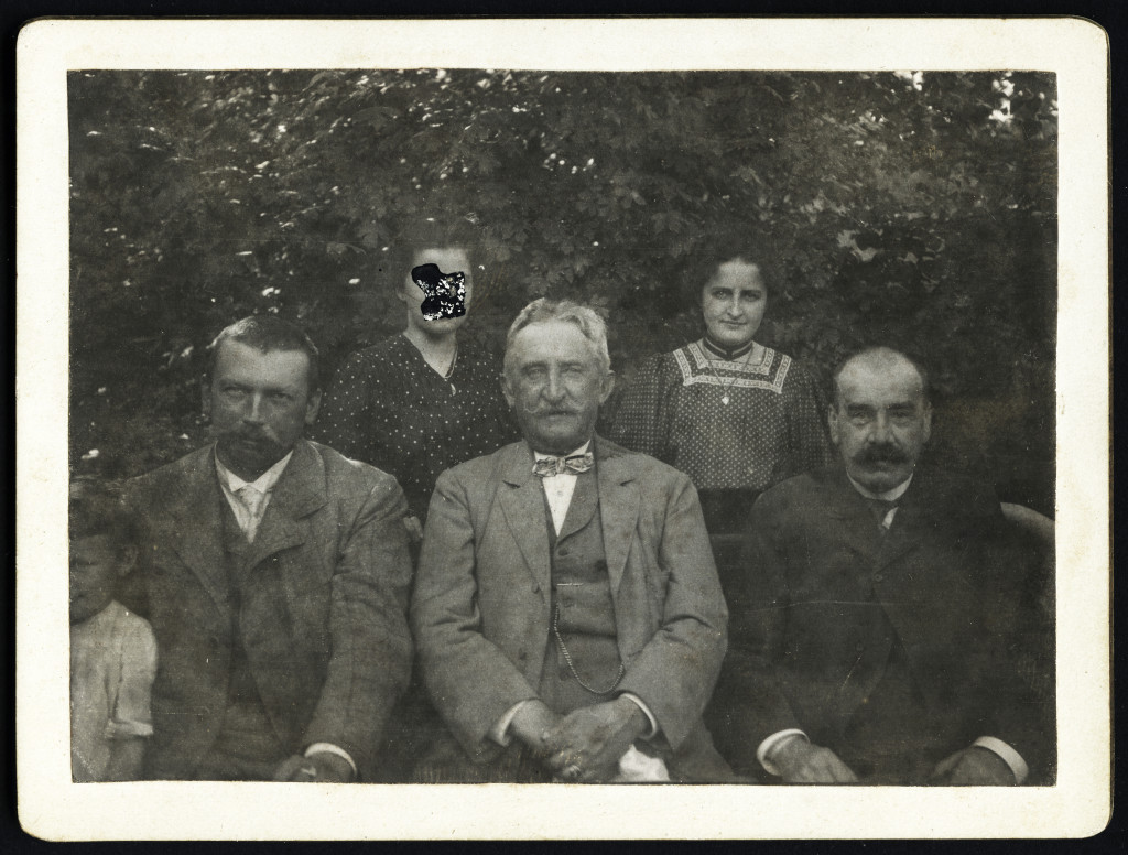 „Dr. Krascsenics Ferencz amateur felvétele”, családi fotó különös kiretusált arccal, Krascsenics Ferenc felvidéki főnemesi családból származik, valószínűleg ő volt a Csallóköz-Szerdahelyi Kaszinó bizottmányi tagja, monarchia, 1900-as évek, Eredeti, h